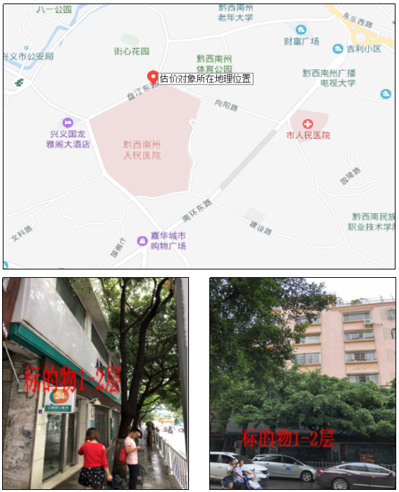 1、標(biāo)的物位于興義市盤江東路49號(hào)A幢第1號(hào)1-2層的綜合房地產(chǎn),標(biāo)的物建成于2005年,南面臨盤江東路,其余三面均臨多層建筑樓棟。混合結(jié)構(gòu),水電、生活燃?xì)?、消防等設(shè)施齊全。使用正常,維護(hù)狀況較好,普通裝修,地面鋪地磚,墻面及頂面刮瓷粉刷乳膠漆,鋁合金窗,防盜門、卷簾門、木門。