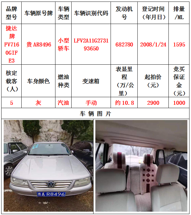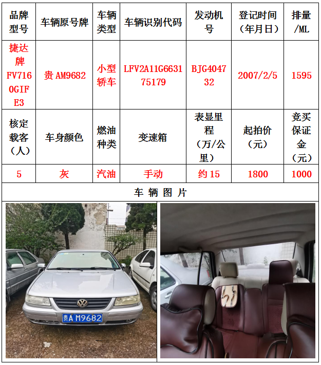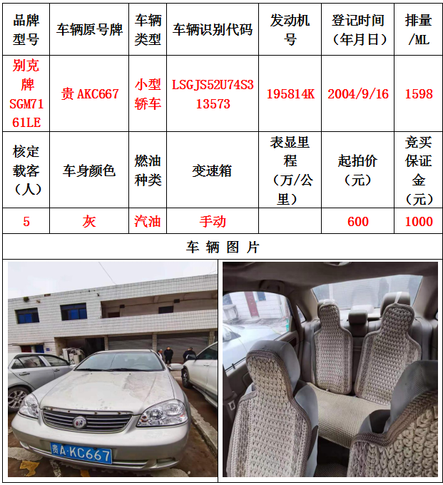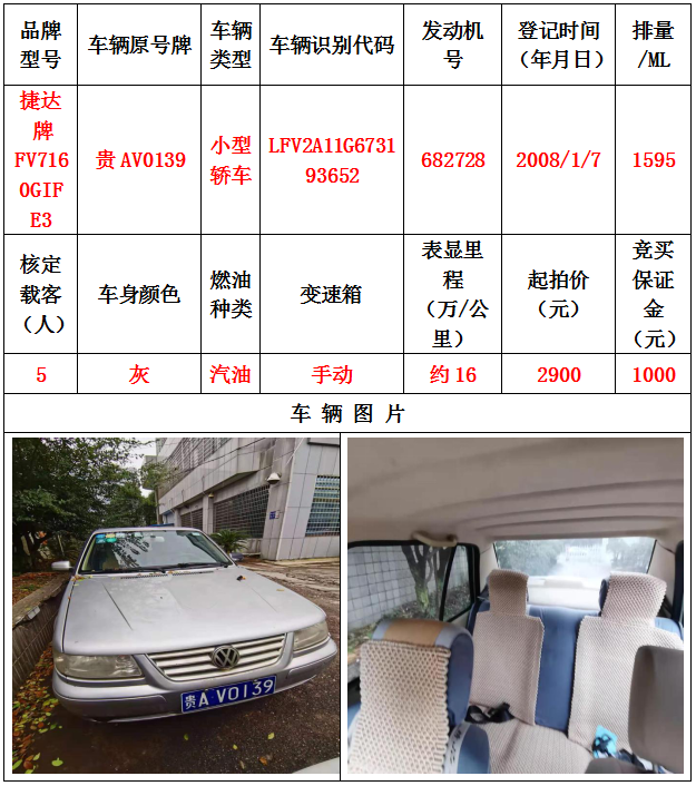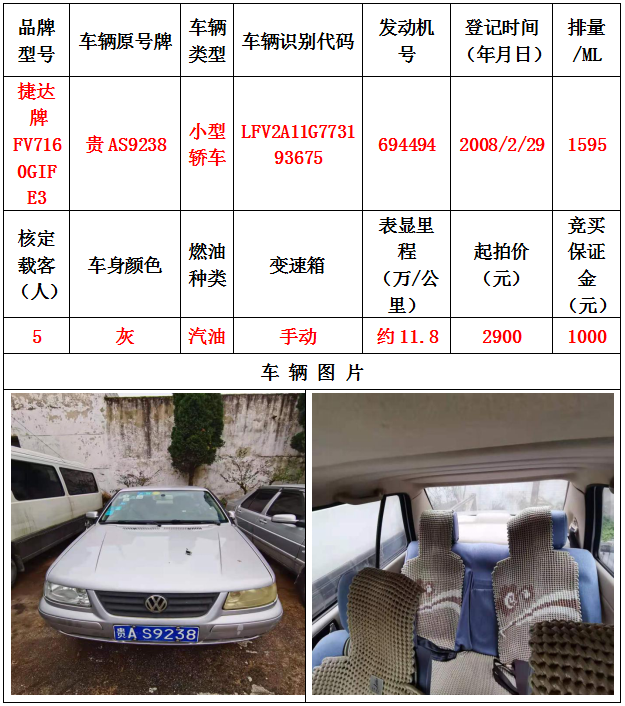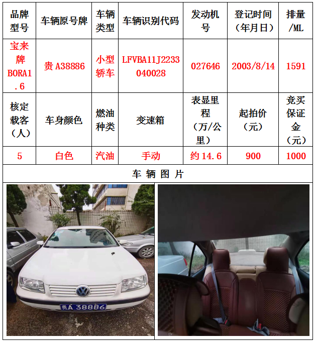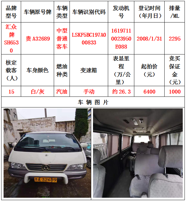 本次拍賣會的拍賣標的共計10輛車,分別為帕薩特牌SVWZ183LJI小型轎車一輛、匯眾牌SH6530中型普通客車一輛、別克牌SGM6517小型普通客車一輛、別克牌SGM7161LE小型轎車一輛、寶來牌BORA1.6小型轎車一輛、捷達牌FV7160GiFE3小型轎車五輛(詳情見下文),為打包整體拍賣,不作拆分,整體起拍價:33900元,且只對標的現(xiàn)狀進行拍賣,不作任何質量擔保。