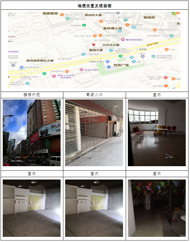 拍品編號12:貴陽市云巖區(qū)延安中路81號鑫海大廈1層35、36、48、49號及2層16、17、50號