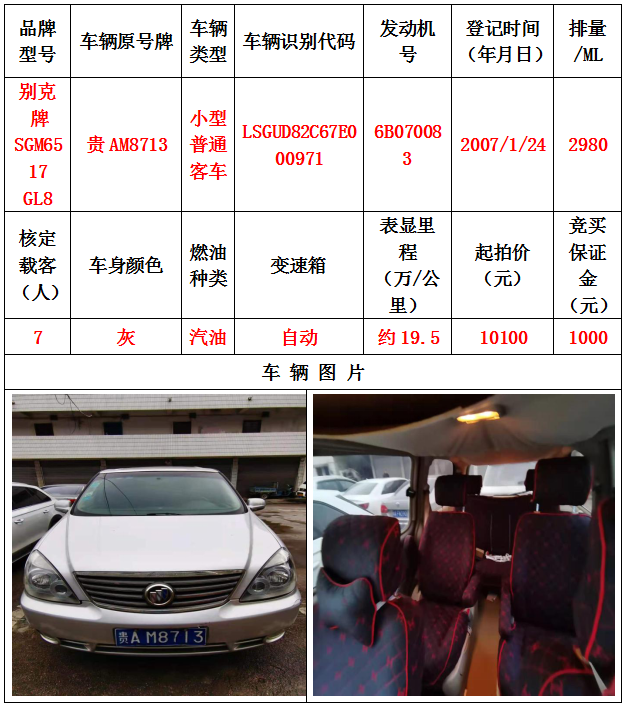 拍品編號(hào)3:別克牌SGM6517 GL8小型普通客車