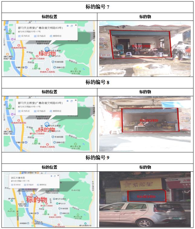 2、都勻市大十字三角巷、西苑小區(qū)、新汽車站對面、新華東巷、新華公寓、劍江中路、馬鞍山城市棚戶區(qū)、石惠公寓等10處房屋3年-5年租賃權(quán),面積約13.27㎡-221.94㎡;