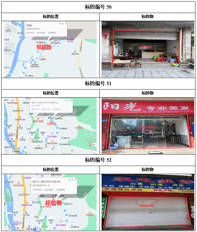 2021年1月28日下午14:00拍賣標的共計38個標的,其中:41—72號標的目前均為租賃狀態(tài),如承租人參與競租,其享有同等價位優(yōu)先購買權(quán),其余73—78標的為閑置狀態(tài)。