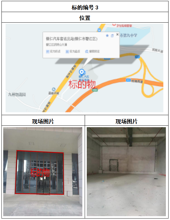 3、銅仁市碧江區(qū)川硐汽車客運(yùn)北站A區(qū)進(jìn)站口負(fù)一層3號(hào)門面,面積:121.5㎡,租賃期:5年,起拍租金:4738.5元/月,競(jìng)租保證金:3萬元;