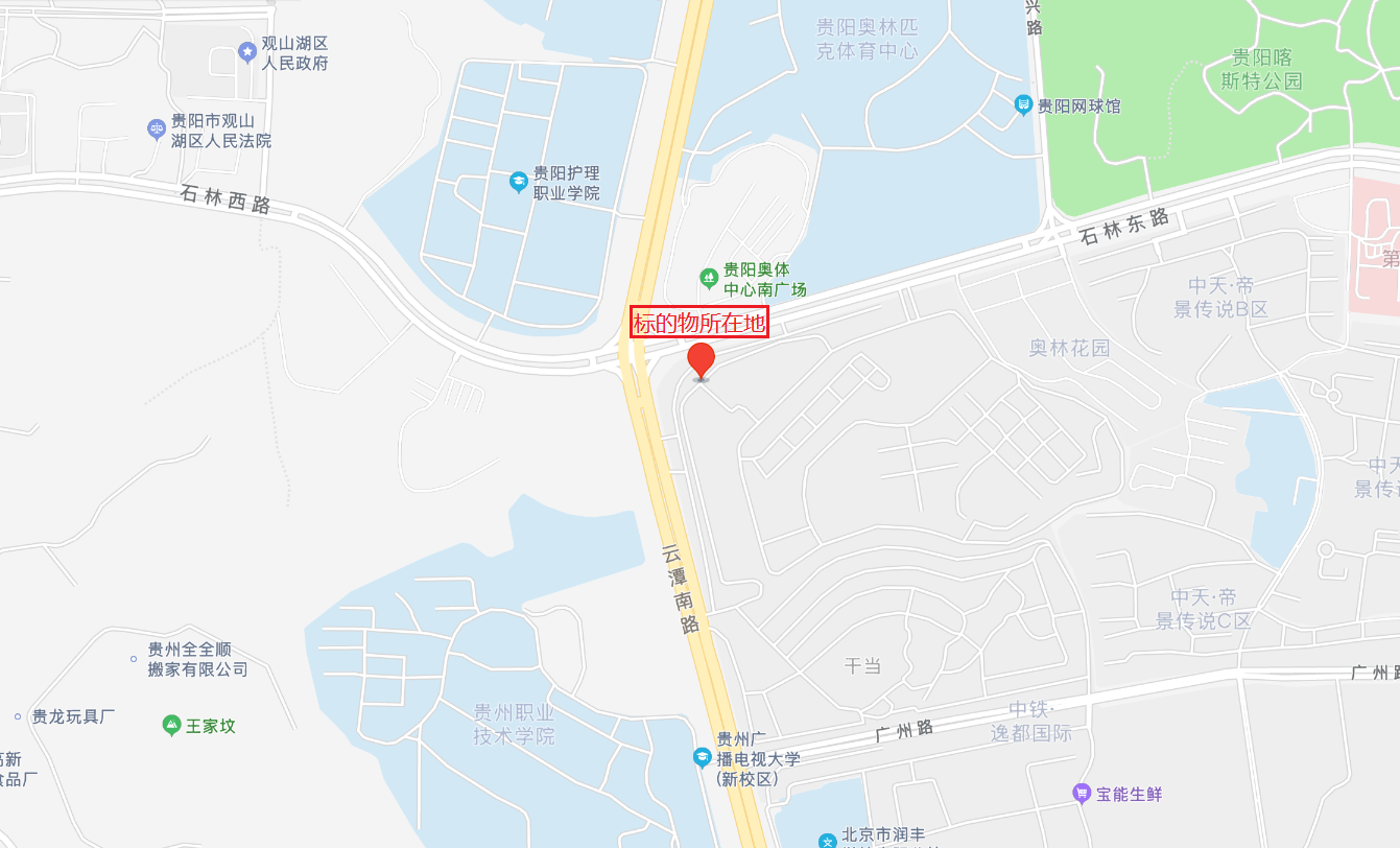 該標(biāo)的周邊道路通達(dá)、停車便捷、基礎(chǔ)設(shè)施完備,達(dá)“五通一平”,室內(nèi)地面鋪地磚、墻面貼石材,頂棚為層板吊頂,采光、通風(fēng)良好。所在區(qū)域有金陽醫(yī)院、觀山湖區(qū)人民政府、貴陽喀斯特公園、貴陽奧林匹克體育中心等,商業(yè)集聚度及繁華度較高。