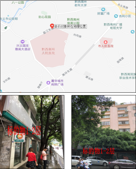 1、標(biāo)的物位于興義市盤江東路49號A幢第1號1-2層的綜合房地產(chǎn),標(biāo)的物建成于2005年,南面臨盤江東路,其余三面均臨多層建筑樓棟?;旌辖Y(jié)構(gòu),水電、生活燃?xì)狻⑾赖仍O(shè)施齊全。使用正常,維護(hù)狀況較好,普通裝修,地面鋪地磚,墻面及頂面刮瓷粉刷乳膠漆,鋁合金窗,防盜門、卷簾門、木門。