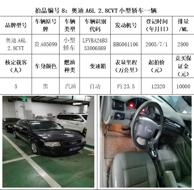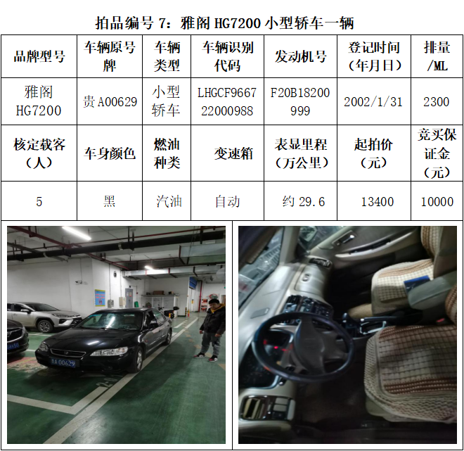 受委托,本公司定于2021年3月26日(星期五)下午14:30時,在貴陽市中華南路20號新大陸數碼廣場10樓D座拍賣廳公開拍賣以下車輛:普拉多越野車1輛、超級維特拉越野車1輛、別克商務旅行車1輛、輝騰轎車1輛、途勝越野車1輛、雅閣轎車2輛、奧迪轎車1輛,長城牌小型越野客車1輛,共計9輛車。