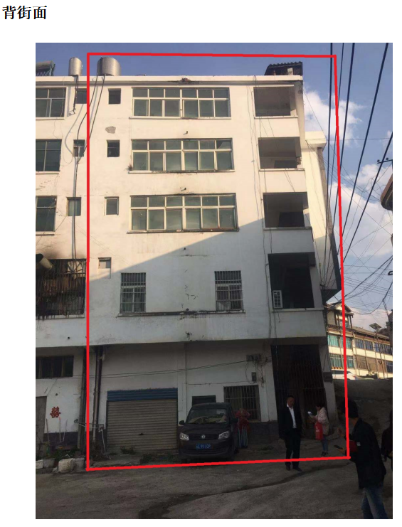 標(biāo)的描述:標(biāo)的有層差,當(dāng)街面為四層,包含三個門面,背街為五層,建筑位于威寧縣中水鎮(zhèn)居樂村老信用社,為混合結(jié)構(gòu),2005年竣工,周邊為臨街門面及自建房,及中水中學(xué)、中水鎮(zhèn)中水小學(xué)、中水鴻運(yùn)酒店、中水信用社、鑫隆超市,周邊環(huán)境較好。該棟建筑物外墻刷涂 料,負(fù)一層地面為水泥清光地面,內(nèi)墻與天花刷白,卷簾門及鐵門,水電明裝;一樓內(nèi)墻貼磚,天花刷白,地面鋪地磚,鋁合金推拉門及鋁合金窗,水電暗裝;二-四層內(nèi)墻與天花刷白、地面鋪地磚, 鋁合金窗,木門、水電明裝。
