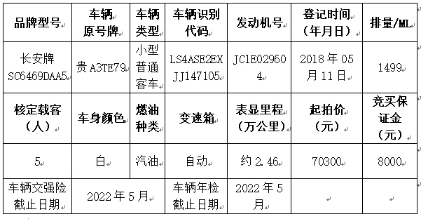 一、拍賣標(biāo)的:長(zhǎng)安牌SC6469DAA5小型普通客車一輛。