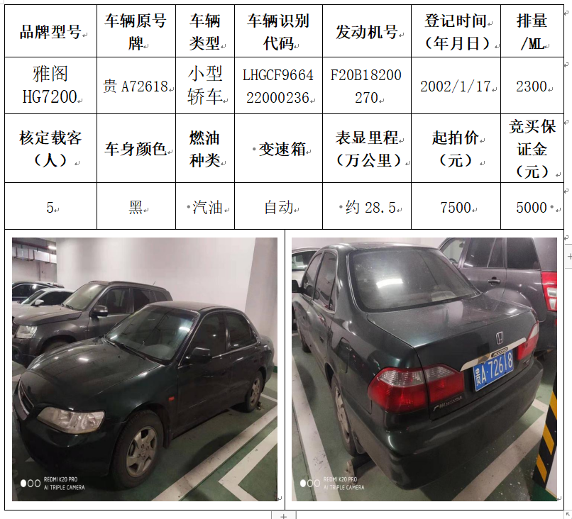 拍品編號4:別克牌SGM6527AT小型普通客車一輛