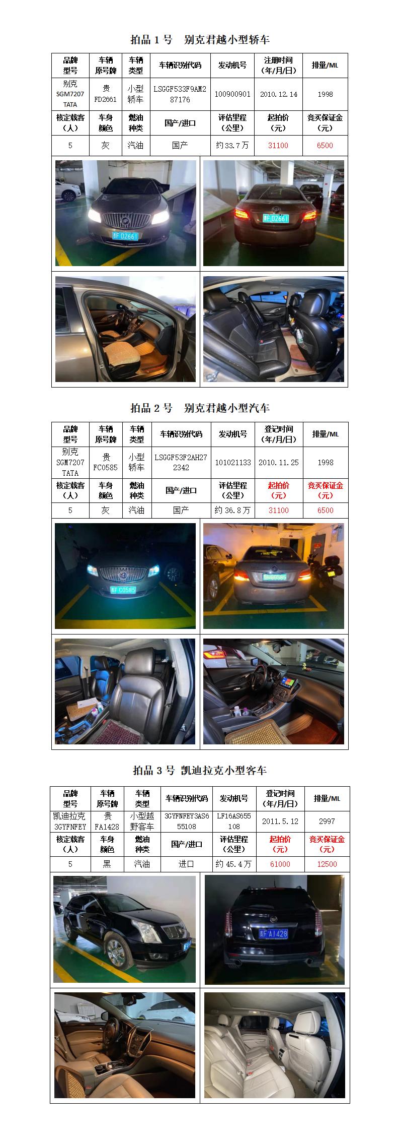 別克牌車輛2輛、凱迪拉克牌車輛1輛。