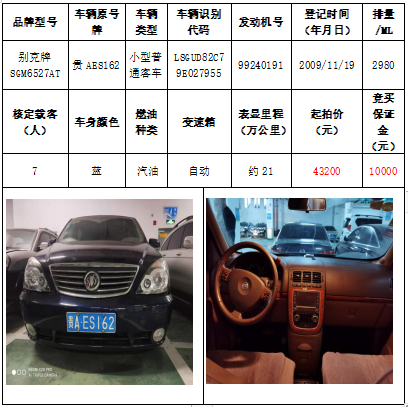 拍品編號(hào)2:別克牌SGM6527AT小型普通客車一輛