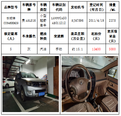 拍品編號(hào)4:長城牌CC6460KM29小型越野客車一輛
