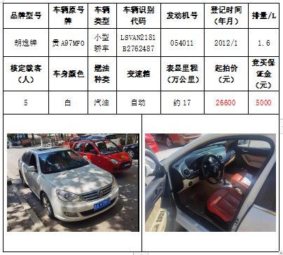 拍品編號(hào)6:朗逸牌小型轎車一輛