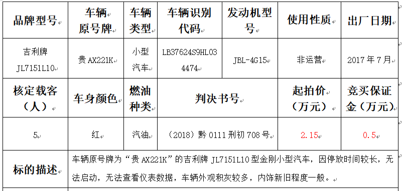 貴州春秋拍賣有限責(zé)任公司|機(jī)動(dòng)車拍賣公告