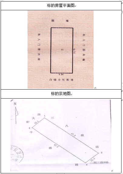 該標(biāo)的位于遵義市播州區(qū)南白鎮(zhèn)白錦小區(qū)二期三段,南面臨白錦小區(qū)街道,其余三面臨其他物業(yè)地塊,房屋總層數(shù)為9層,該標(biāo)的所在層數(shù)為1層,證載房屋建筑面積為57.31㎡,標(biāo)的規(guī)劃用途為為營(yíng)業(yè),房屋建筑結(jié)構(gòu)為混合,房屋所有權(quán)證號(hào):遵房權(quán)證遵義縣字第200905595號(hào)。