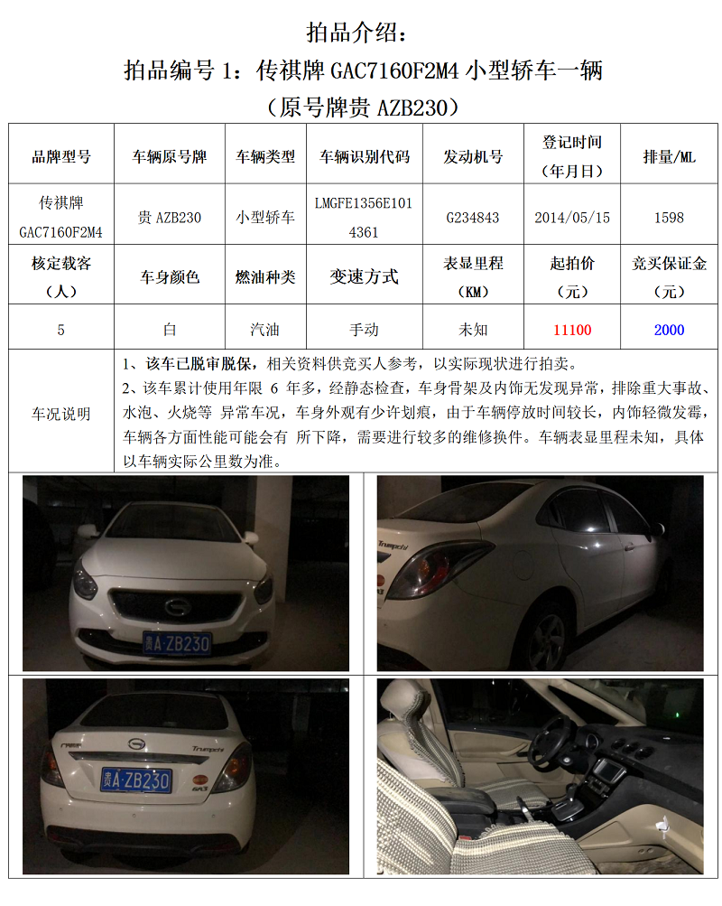 機(jī)動(dòng)車(chē)拍賣(mài)公告
